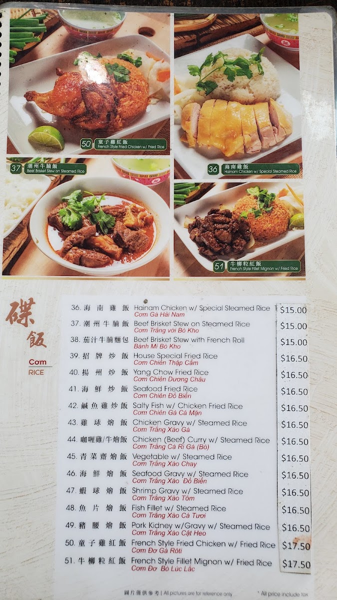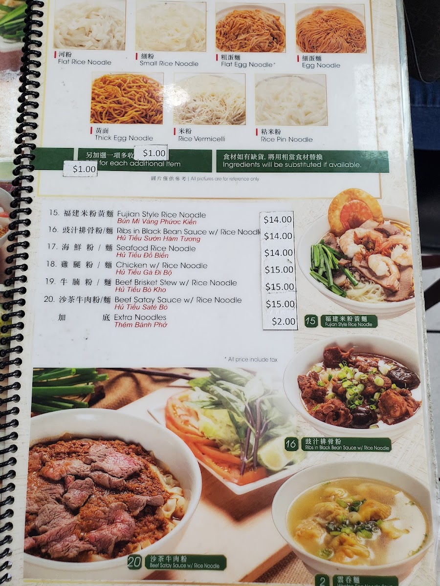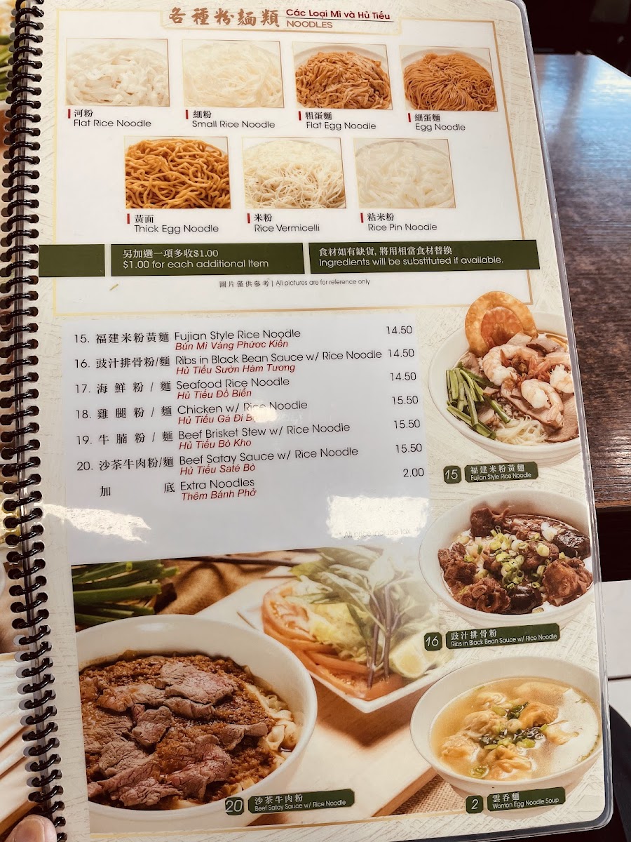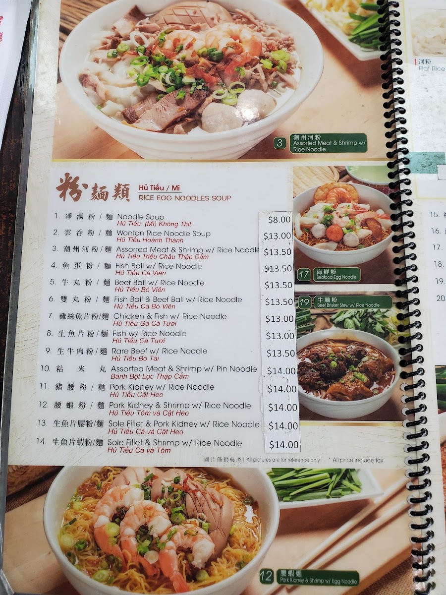 Kim Ky Noodle House offers a diverse and flavorful menu, perfect for those craving authentic Vietnamese and Chinese dishes. For a refreshing drink, try the Fresh Lime W/ Soda or the Pickle Plum W/ Soda, both offering a tangy twist. The French Coffee W/ Condensed Milk and Iced Coffee W/ Milk Tea are great choices for coffee lovers. The rice egg noodle soups, including options like Hủ Tiếu Hoành Thánh (Meat & Shrimp W/ Rice Noodle) and Fish Ball W/ Rice Noodle, are comforting and flavorful. For those looking for variety, the menu includes a selection of noodle types such as Flat Rice Noodle, Small Rice Noodle, and Thick Egg Noodle, catering to different tastes and preferences. Stir-fried noodle dishes like Beef Chow Fun and Pork Kidney & Shrimp Chow Fun bring bold flavors to the table. If you're in the mood for sides, the Fried Fish Cake, Fried Wonton, and Wonton Soup are popular choices. For a lighter meal, try the range of porridges, including Fish Porridge and Shrimp Porridge, each providing a comforting, savory experience. For something heartier, the Hainam Chicken W/ Special Steamed Rice or Salty Fish W/ Chicken Fried Rice will satisfy your appetite. Whether you’re looking for a quick bite or a more filling meal, Kim Ky Noodle House has something for everyone.
